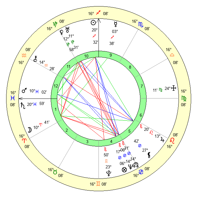 | Mars | 10 Pisces 1 | 5 Leo 52 | 1 Gemini 2 |