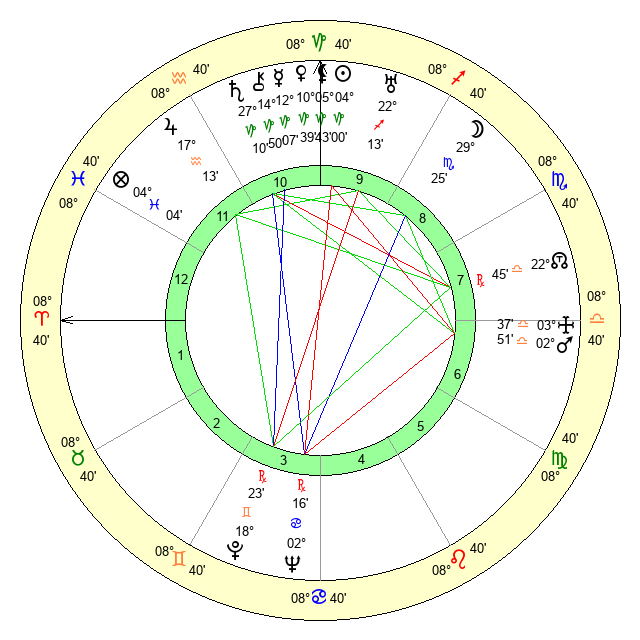 | Pluto | 18 Gemini 24 | 0 Aquarius 54 | 18 Gemini 13 |