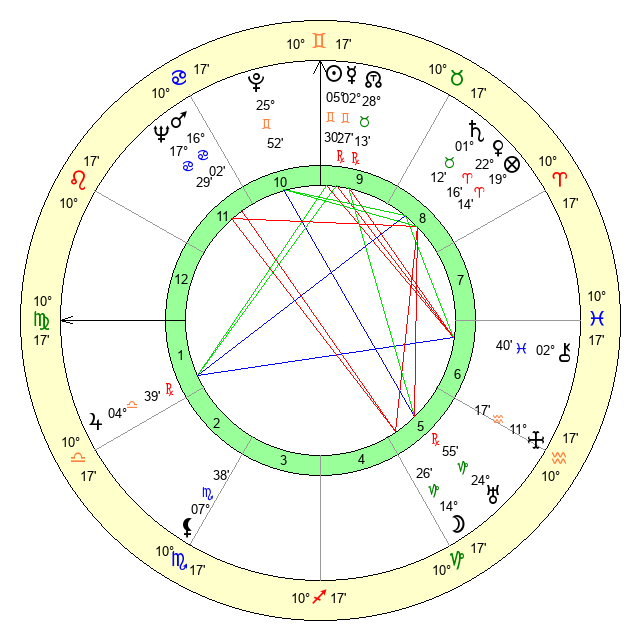 | Sun | 5 Gemini 30 | 6 Gemini 39 | 25 Virgo 52 |