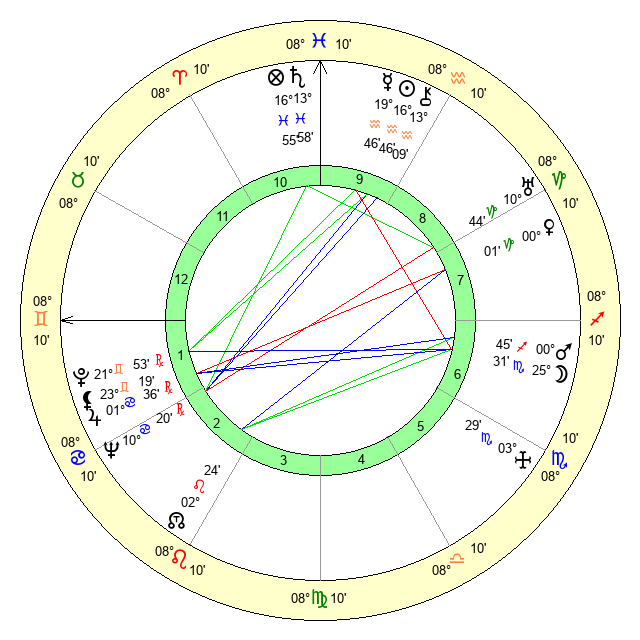 | Moon | 25 Scorpio 36 | 6 Gemini 0 | 1 Aries 13 |