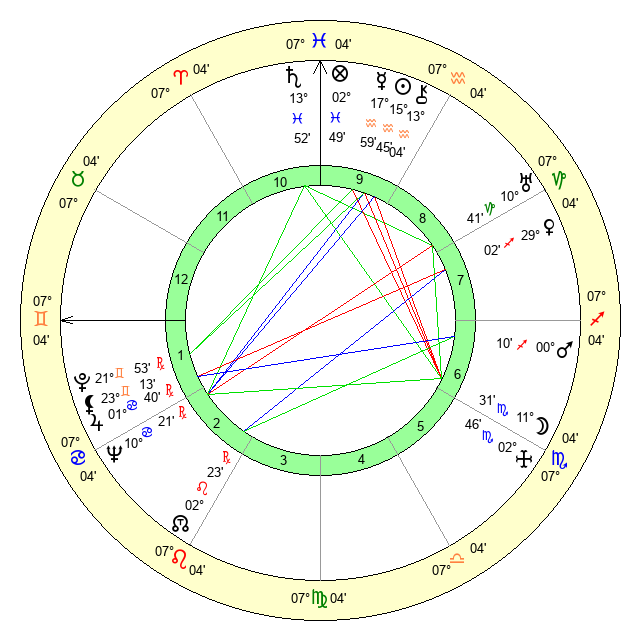 | Sun | 15 Aquarius 46 | 17 Aquarius 9 | 11 Gemini 57 |