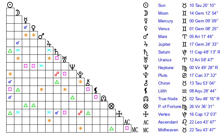 Uranus | 12 Aries 58 | 26 Taurus 22 | 15 Aries 17 |