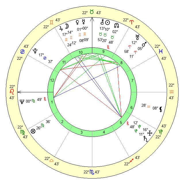 Mars | 5 Aries 12 | 5 Leo 48 | 14 Gemini 22 |