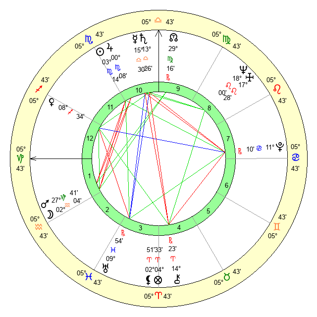 Sun | 3 Scorpio 15 | 4 Scorpio 31 | 16 Aquarius 39 |
