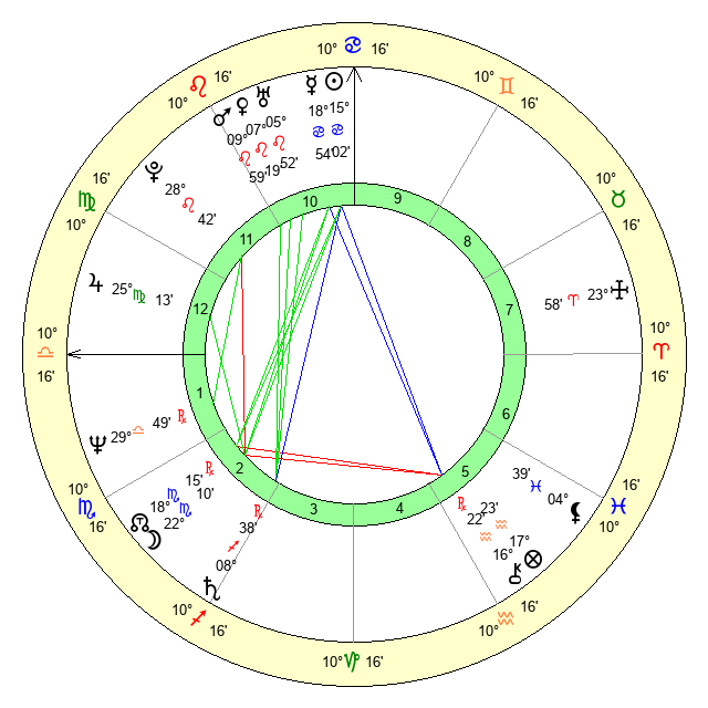 | Mercury | 18 Cancer 55 | 11 Leo 13 | 13 Virgo 34 |