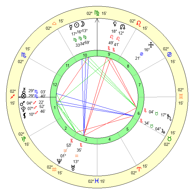 | Sun | 16 Virgo 34 | 17 Virgo 16 | 12 Libra 1 |