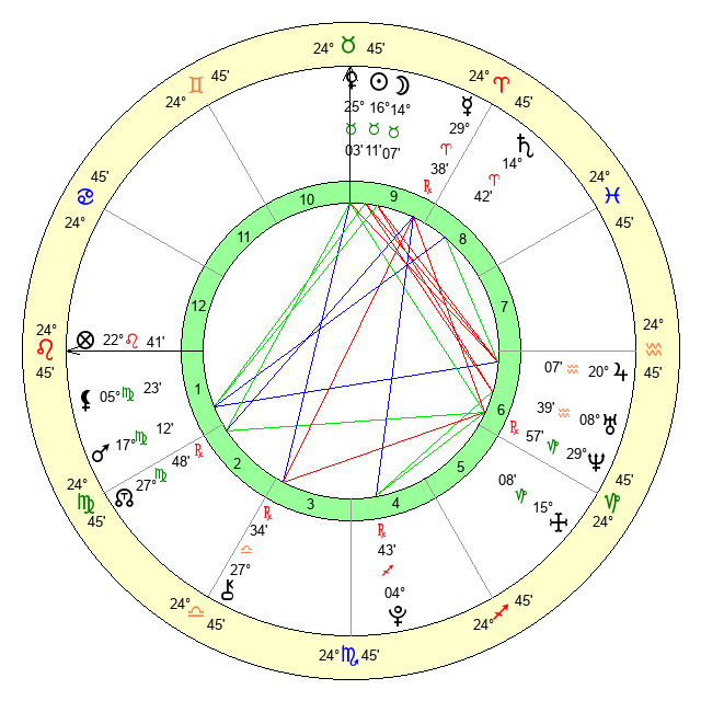 | Mars | 17 Virgo 12 | 8 Leo 16 | 23 Virgo 50 |