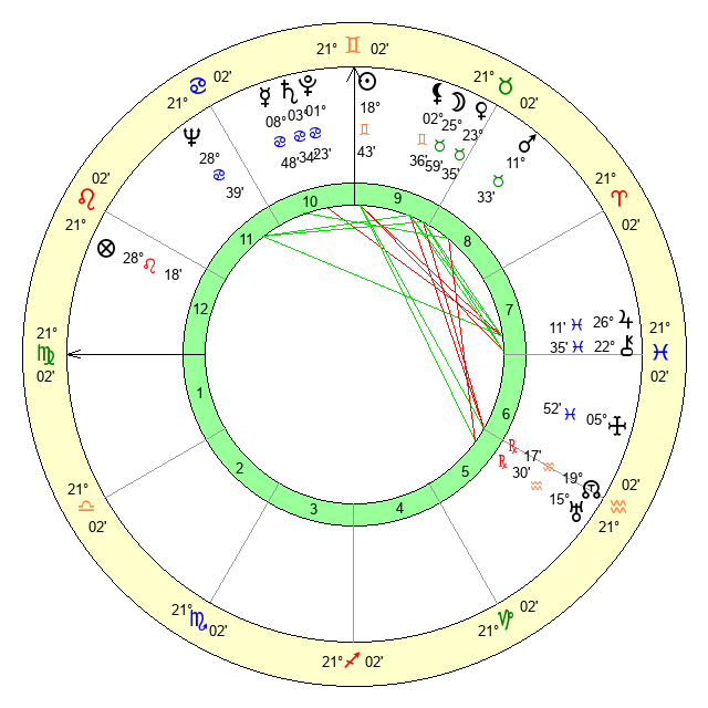 | Sun | 18 Gemini 43 | 20 Gemini 4 | 4 Libra 28 |
