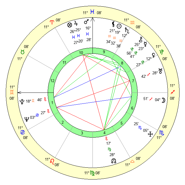 | Sun | 19 Aquarius 32 | 21 Aquarius 12 | 18 Gemini 23 |
