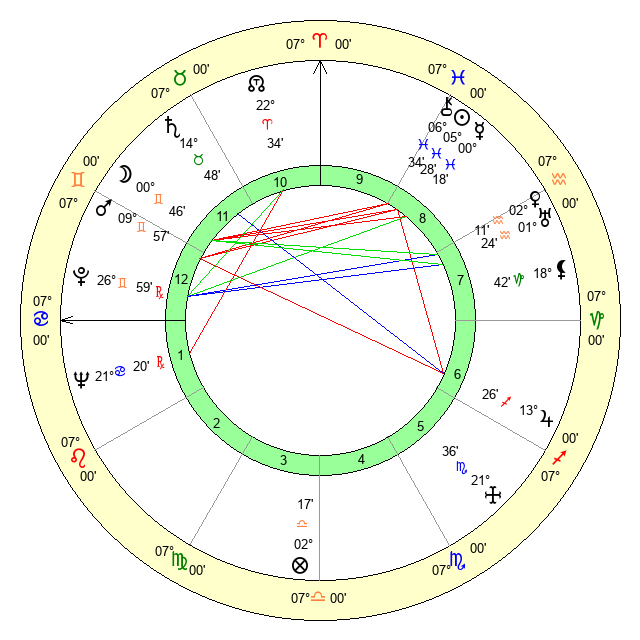 | Moon | 0 Gemini 53 | 2 Aquarius 45 | 26 Cancer 27 |