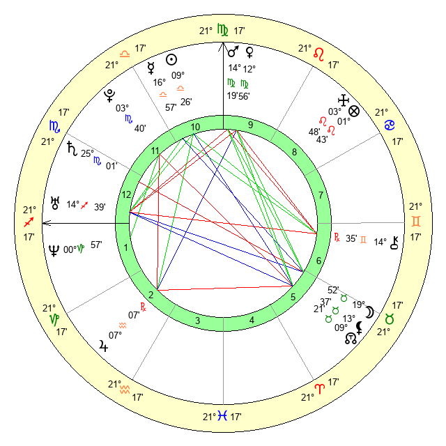 | Venus | 12 Virgo 56 | 16 Virgo 10 | 2 Scorpio 36 |