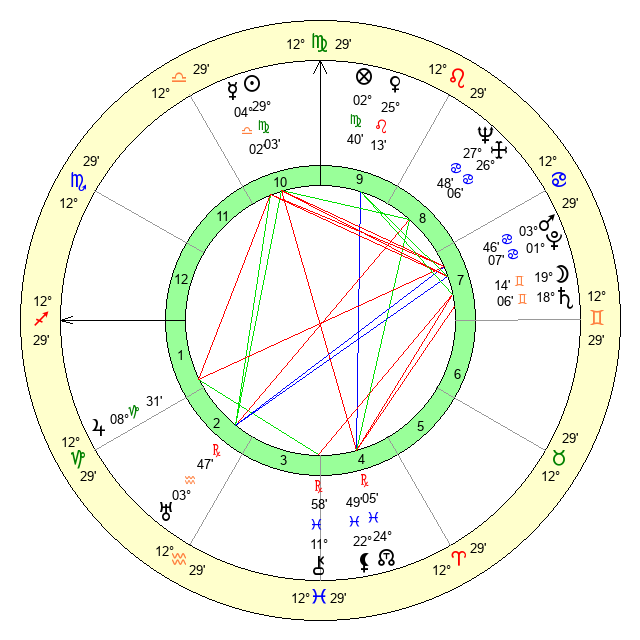 | Sun | 29 Virgo 4 | 29 Virgo 56 | 21 Capricorn 40 |