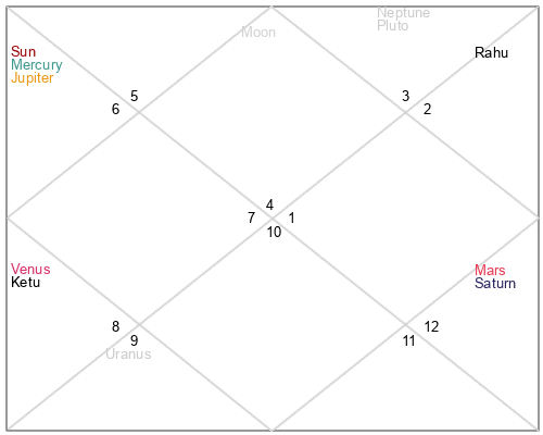| Rahu | 10 Gemini 11 | 16 Pisces 35 | 4 Gemini 2 |
