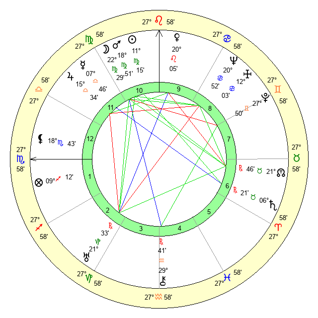 | Mars | 18 Virgo 52 | 18 Libra 20 | 5 Sagittarius 44 |