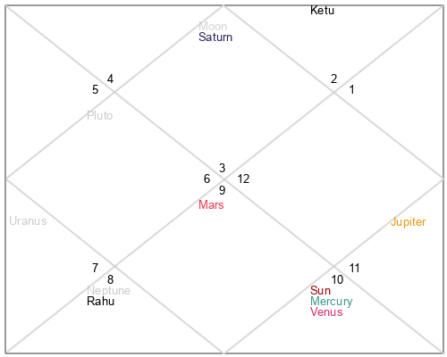 | Rahu | 7 Sagittarius 20 | 0 Aries 14 | 4 Sagittarius 41 |