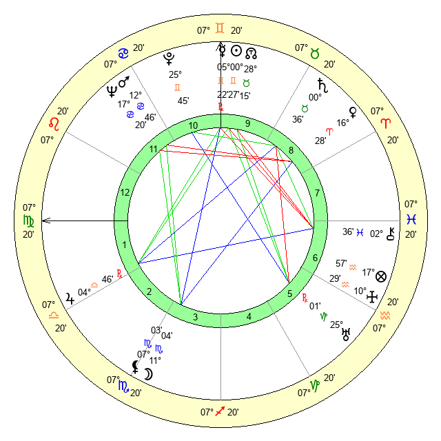 | Moon | 11 Scorpio 5 | 26 Pisces 46 | 20 Capricorn 21 |