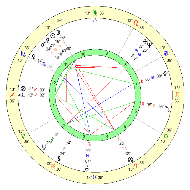 | Venus | 12 Scorpio 24 | 25 Virgo 42 | 27 Pisces 15 |