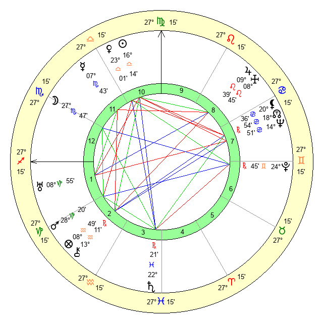 | Moon | 27 Scorpio 44 | 7 Gemini 2 | 2 Aries 3 |