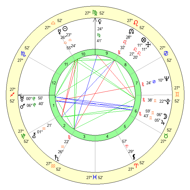| Venus | 24 Virgo 42 | 4 Libra 26 | 24 Aquarius 53 |