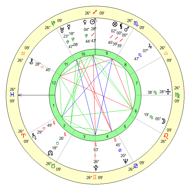 | Moon | 5 Virgo 19 | 14 Virgo 0 | 2 Scorpio 52 |