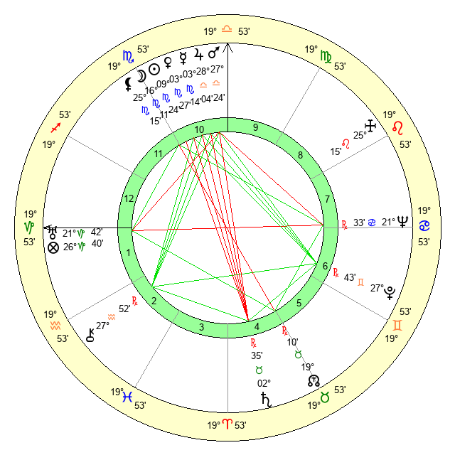 | Jupiter | 27 Libra 53 | 20 Gemini 20 | 14 Scorpio 16 |