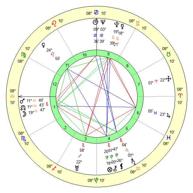 | Sun | 9 Cancer 36 | 11 Cancer 4 | 8 Scorpio 6 |