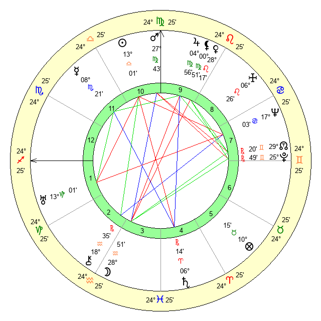 | Mars | 27 Virgo 44 | 9 Scorpio 46 | 14 Sagittarius 22 |