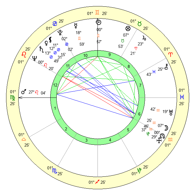 | Sun | 0 Gemini 57 | 1 Gemini 34 | 15 Virgo 24 |