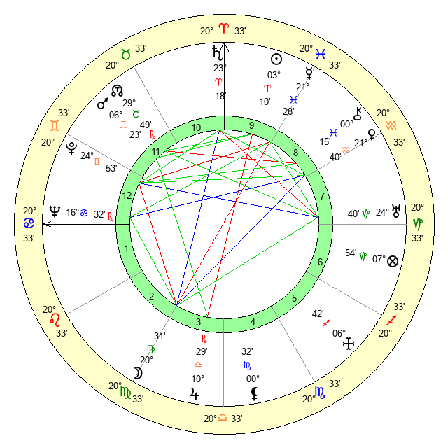 | Neptune | 16 Cancer 32 | 29 Pisces 47 | 19 Cancer 16 |