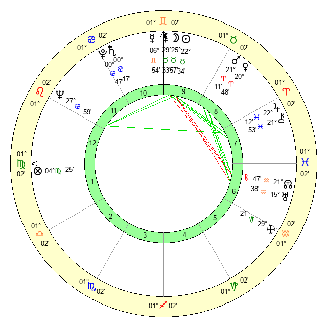 | Jupiter | 21 Pisces 57 | 24 Gemini 10 | 25 Pisces 14 |