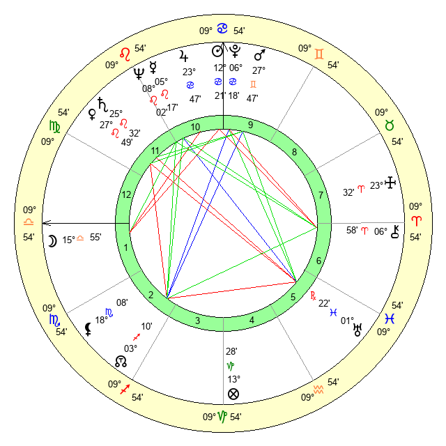 Moon | 16 Libra 6 | 12 Scorpio 32 | 4 Virgo 46 |