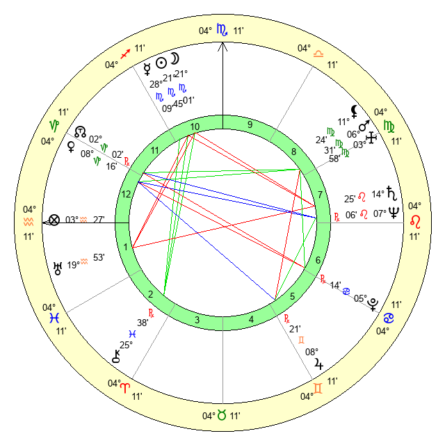 | Mars | 6 Virgo 31 | 3 Leo 9 | 28 Virgo 50 |