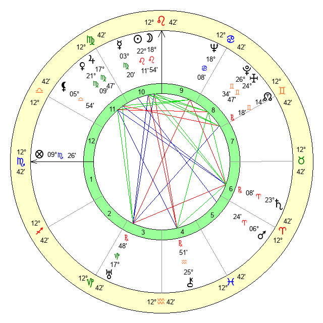 | Mercury | 3 Virgo 21 | 5 Leo 23 | 20 Sagittarius 35 |