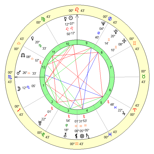 | Mercury | 12 Leo 51 | 9 Leo 12 | 12 Sagittarius 24 |