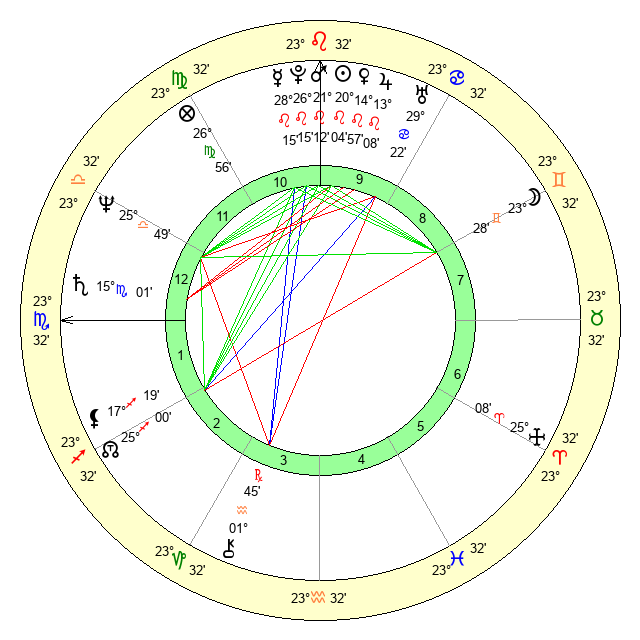 | Mercury | 28 Leo 15 | 4 Leo 33 | 13 Libra 9 |