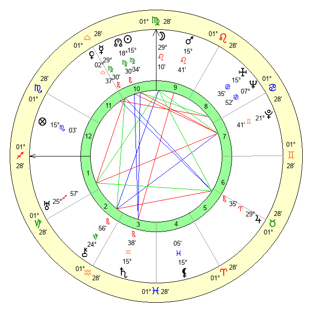 | Venus | 2 Libra 38 | 16 Leo 51 | 0 Pisces 7 |