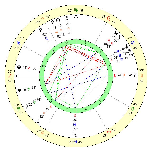 | Venus | 18 Libra 3 | 21 Virgo 6 | 14 Pisces 54 |
