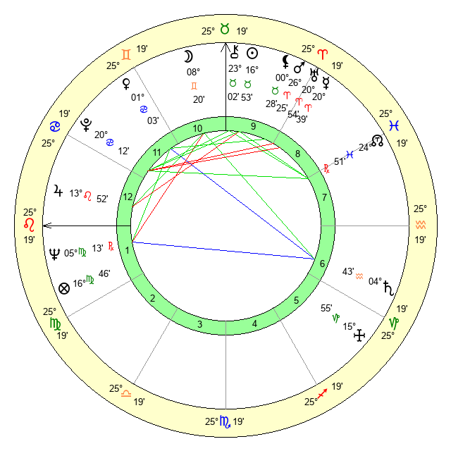 | Moon | 8 Gemini 24 | 22 Virgo 58 | 7 Scorpio 47 |