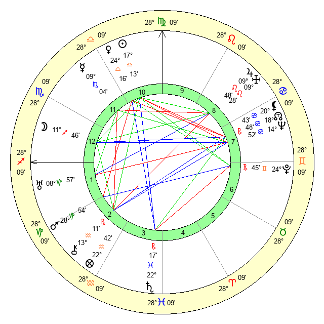 | Venus | 24 Libra 17 | 27 Virgo 18 | 21 Pisces 0 |