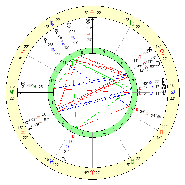 | Sun | 5 Scorpio 8 | 6 Scorpio 31 | 4 Pisces 42 |