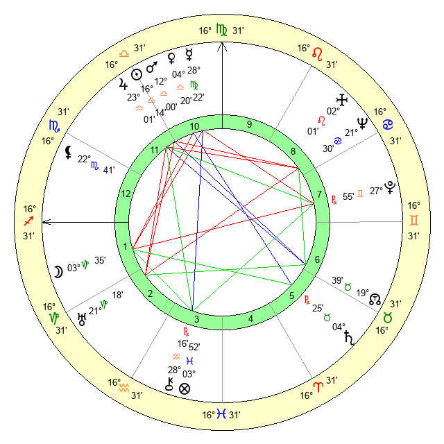 | Mercury | 28 Virgo 22 | 5 Scorpio 33 | 17 Capricorn 12 |