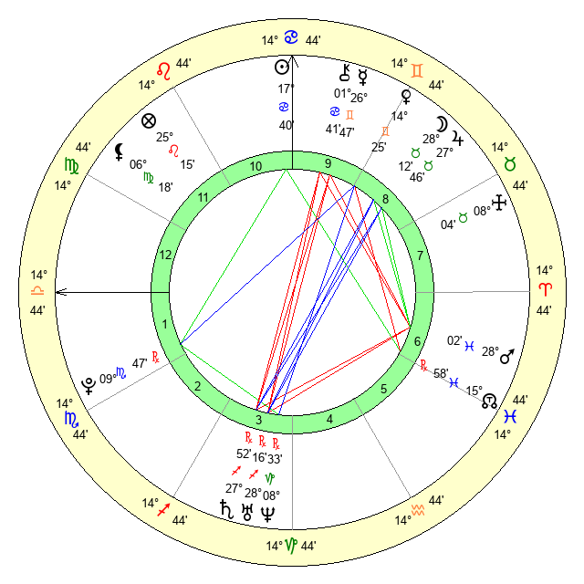 | Sun | 17 Cancer 41 | 17 Cancer 44 | 23 Leo 4 |