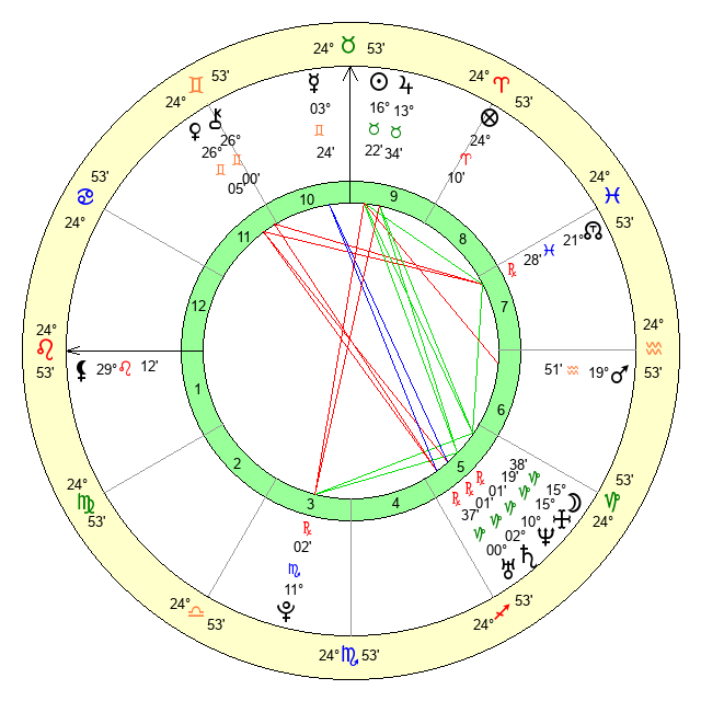 | Moon | 15 Capricorn 39 | 10 Virgo 57 | 1 Gemini 23 |