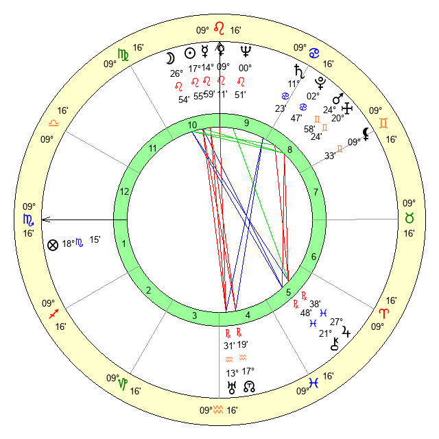 | Moon | 27 Leo 3 | 19 Pisces 42 | 3 Virgo 49 |