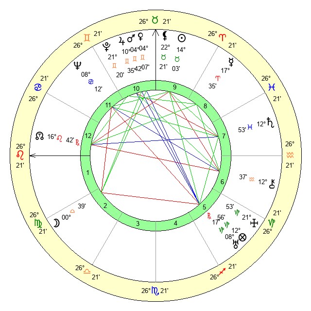 | Moon | 0 Libra 44 | 26 Leo 7 | 19 Aquarius 27 |