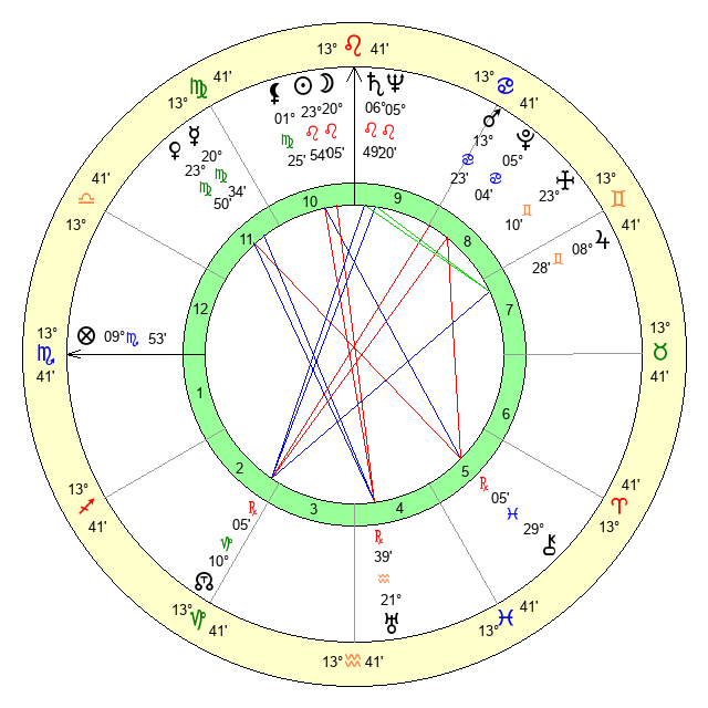 | Venus | 23 Virgo 51 | 20 Cancer 10 | 27 Capricorn 53 |