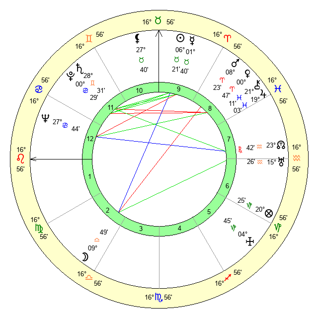 | Moon | 9 Libra 54 | 6 Taurus 15 | 20 Libra 34 |