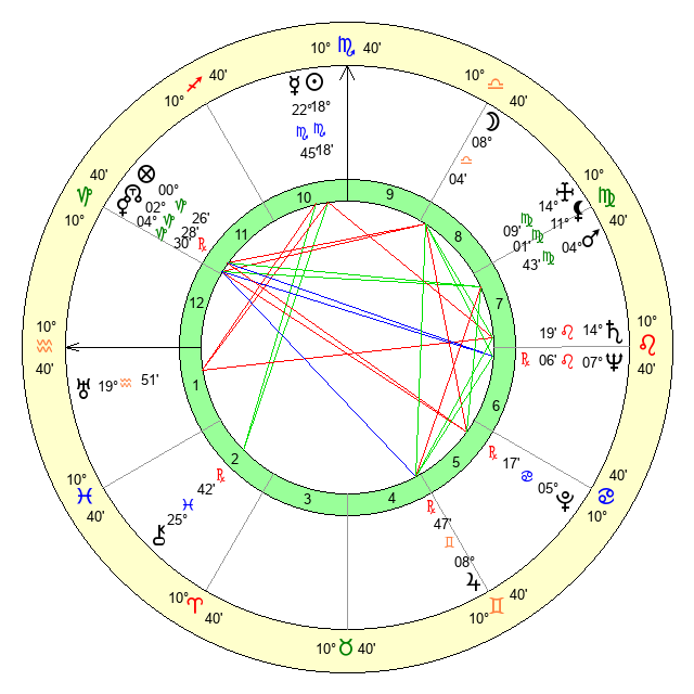 | Mars | 4 Virgo 43 | 2 Leo 14 | 29 Virgo 52 |