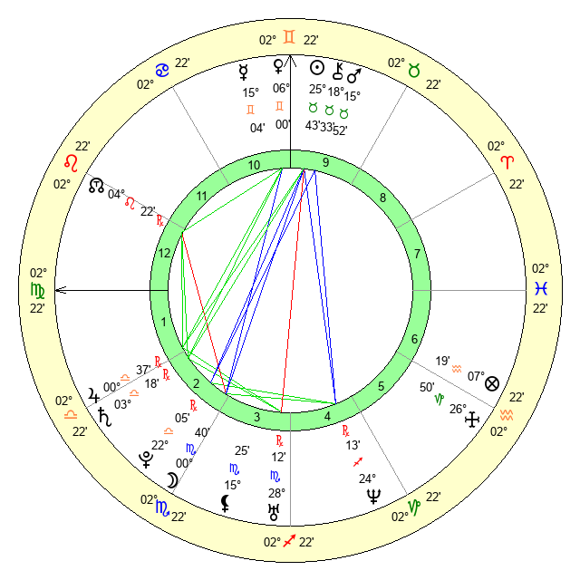 | Jupiter | 0 Libra 28 | 24 Gemini 38 | 1 Libra 52 |