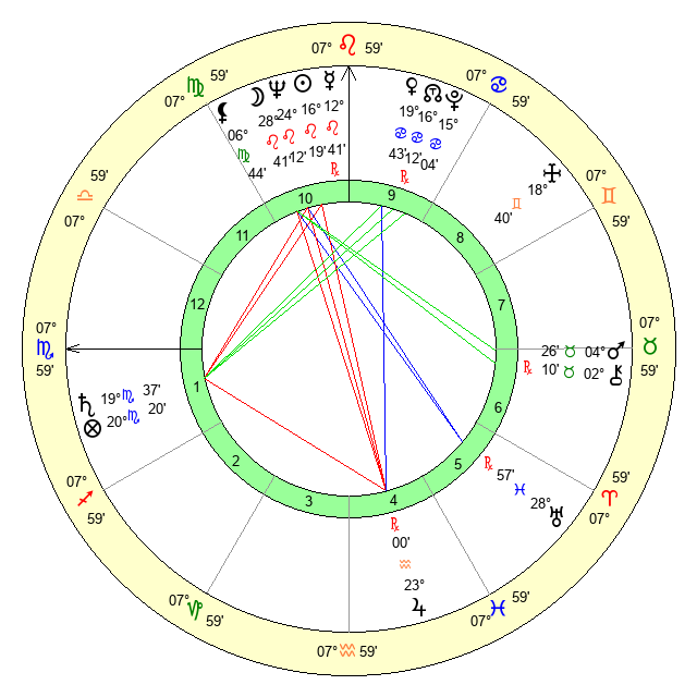| Venus | 19 Cancer 44 | 11 Cancer 6 | 22 Scorpio 24 |